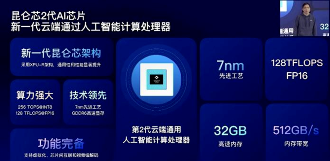 第一代昆侖芯于2020年開始大規模部署,采用14納米工藝和先進的HBM內存、2.5D封裝技術。這款芯片剛量產就在百度數據中心里部署了超過2萬片。一年后,第二代昆侖芯量產,采用了更先進的7納米工藝和XPU第二代的架構。同時,它也是業界第一顆采用GDDR6高速顯存技術的AI芯片。目前,昆侖芯科技正在研發更先進的第三代AI芯片,針對高階自動駕駛系統,未來可能會推出定制的車規高性能SoC(系統級芯片)。